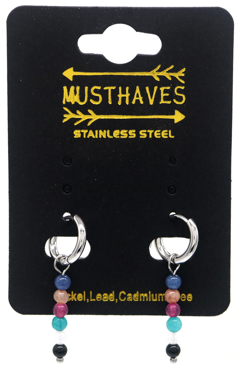 H-E4.4 E2275-009S S. Steel 10mm Earrings with Stones 3cm
