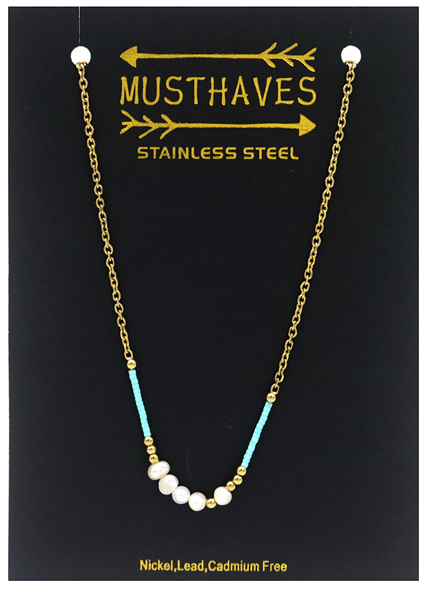 I-A10.1 NA221-103G S. Steel Necklace Glassbeads Freshwater Pearls 40-45cm