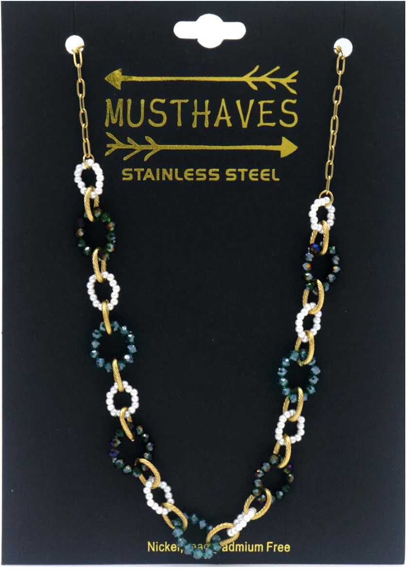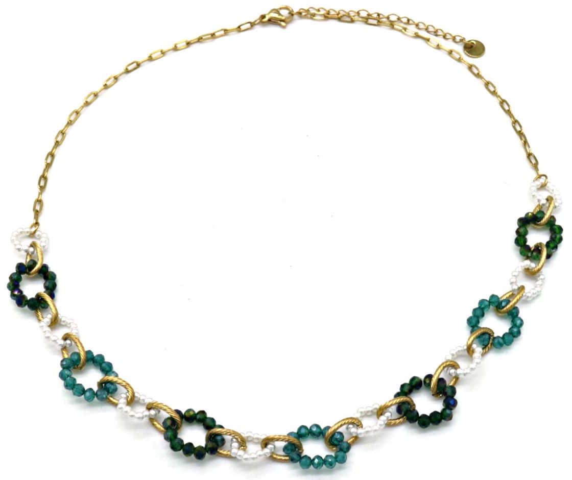 Product information "I-C3.1 N221-384 No. 6 S. Steel Necklace Faceted Glassbeads Green"