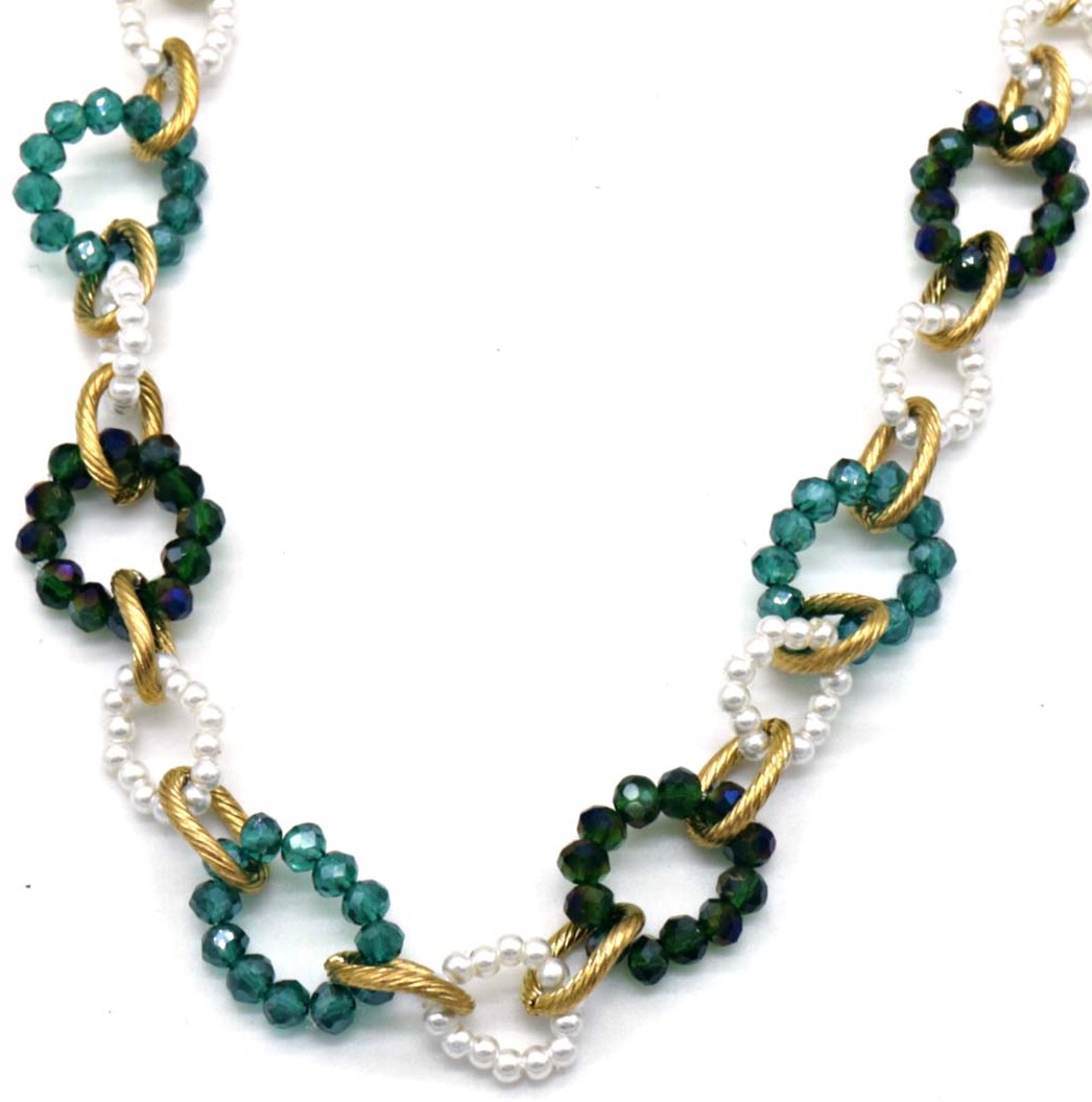 I-C3.1 N221-384 No. 6 S. Steel Necklace Faceted Glassbeads Green