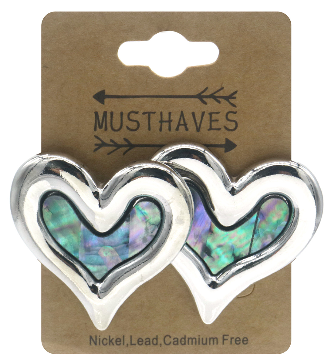 I-D21.2 E2591-158S Fashion Earrings Heart MOP 3.5cm Silver