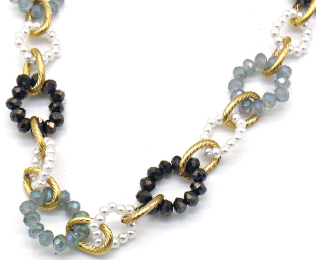 I-D3.2 N221-384 No. 5 S. Steel Necklace Faceted Glassbeads Grey