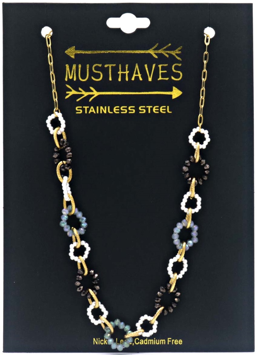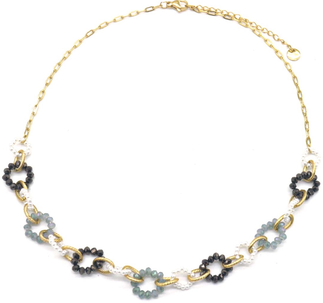 Product information "I-D3.2 N221-384 No. 5 S. Steel Necklace Faceted Glassbeads Grey"