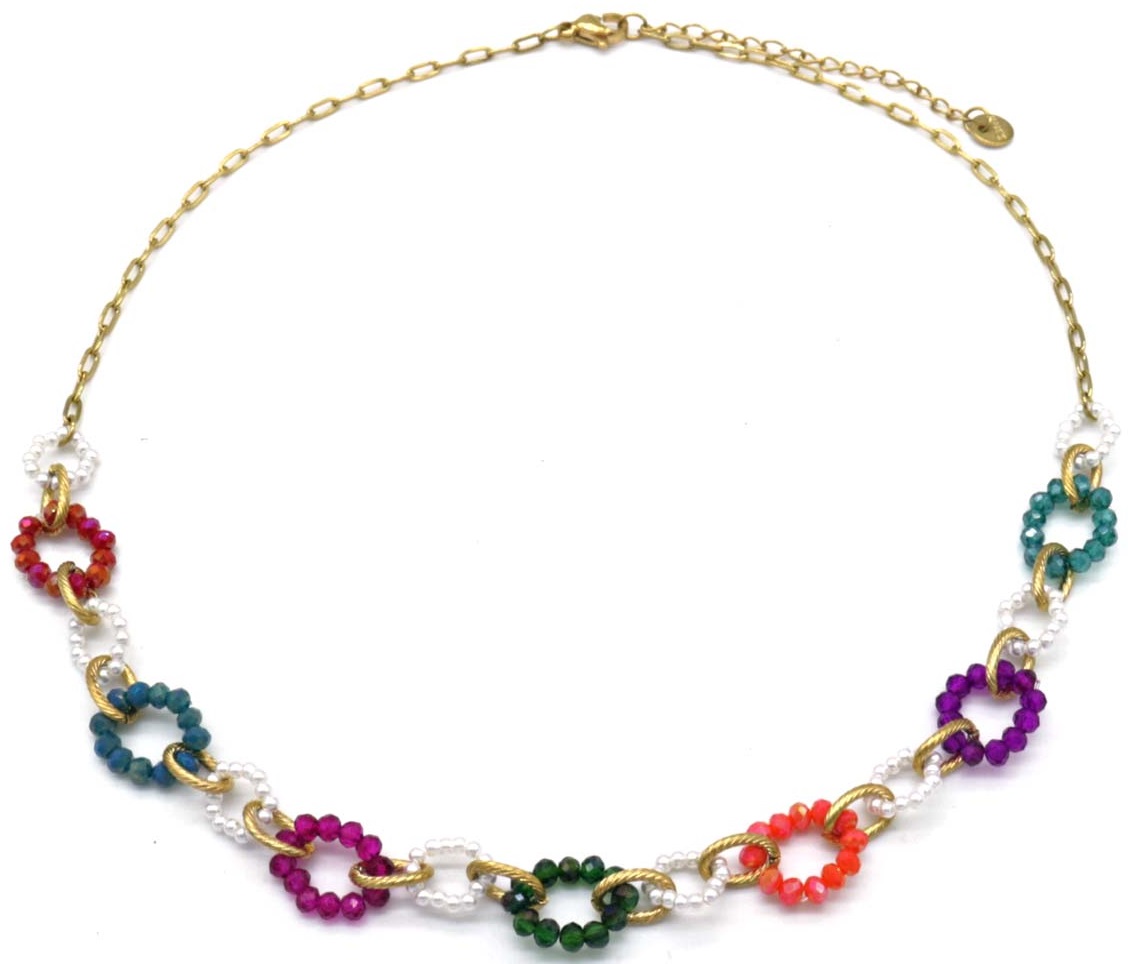 Product information "I-D5.3 N221-384 No. 1 S. Steel Necklace Faceted Glassbeads Multi"
