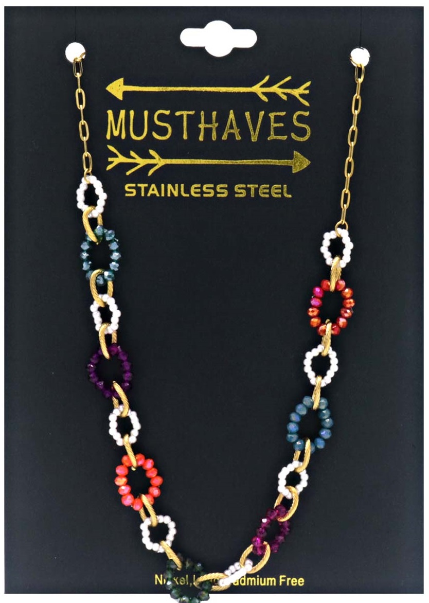 I-D5.3 N221-384 No. 1 S. Steel Necklace Faceted Glassbeads Multi