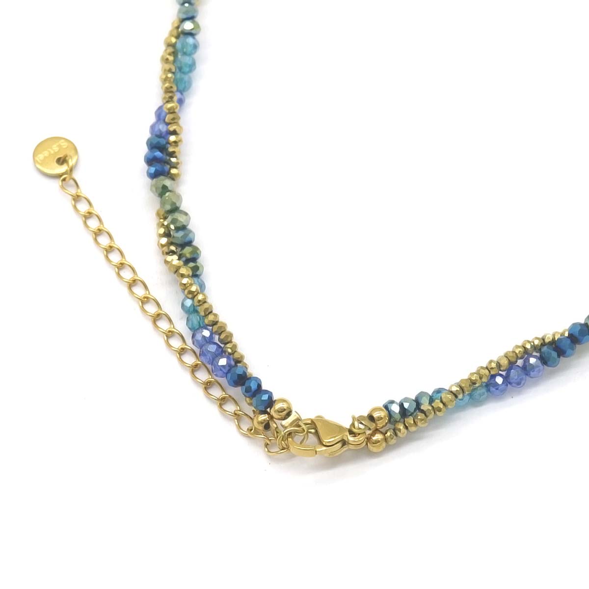 Hecho a partir de acero inoxidable de alta calidad, este collar no solo es duradero sino también resistente a la empañada, asegurando que conserve su brillo y belleza con el tiempo. El detalle de la tela agrega una textura única, que mejora su estética general y lo convierte en una pieza versátil que se puede usar para cualquier ocasión.