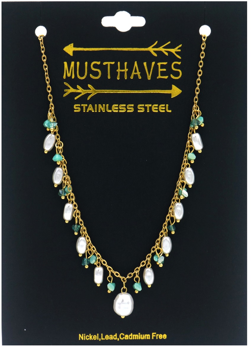 J-D5.2 N831-009G S. Steel Necklace Pearls