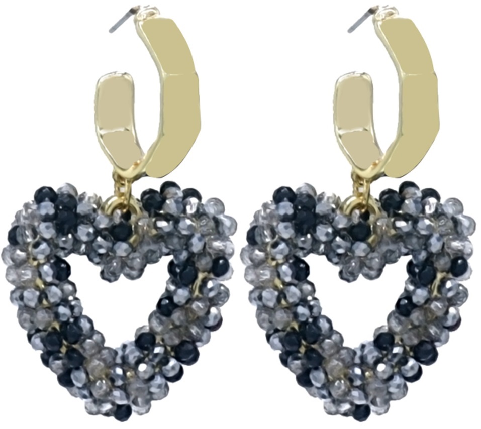 J-E5.2 E827-003-1 Earring Faceted Glass Beads 4.5cm Grey
