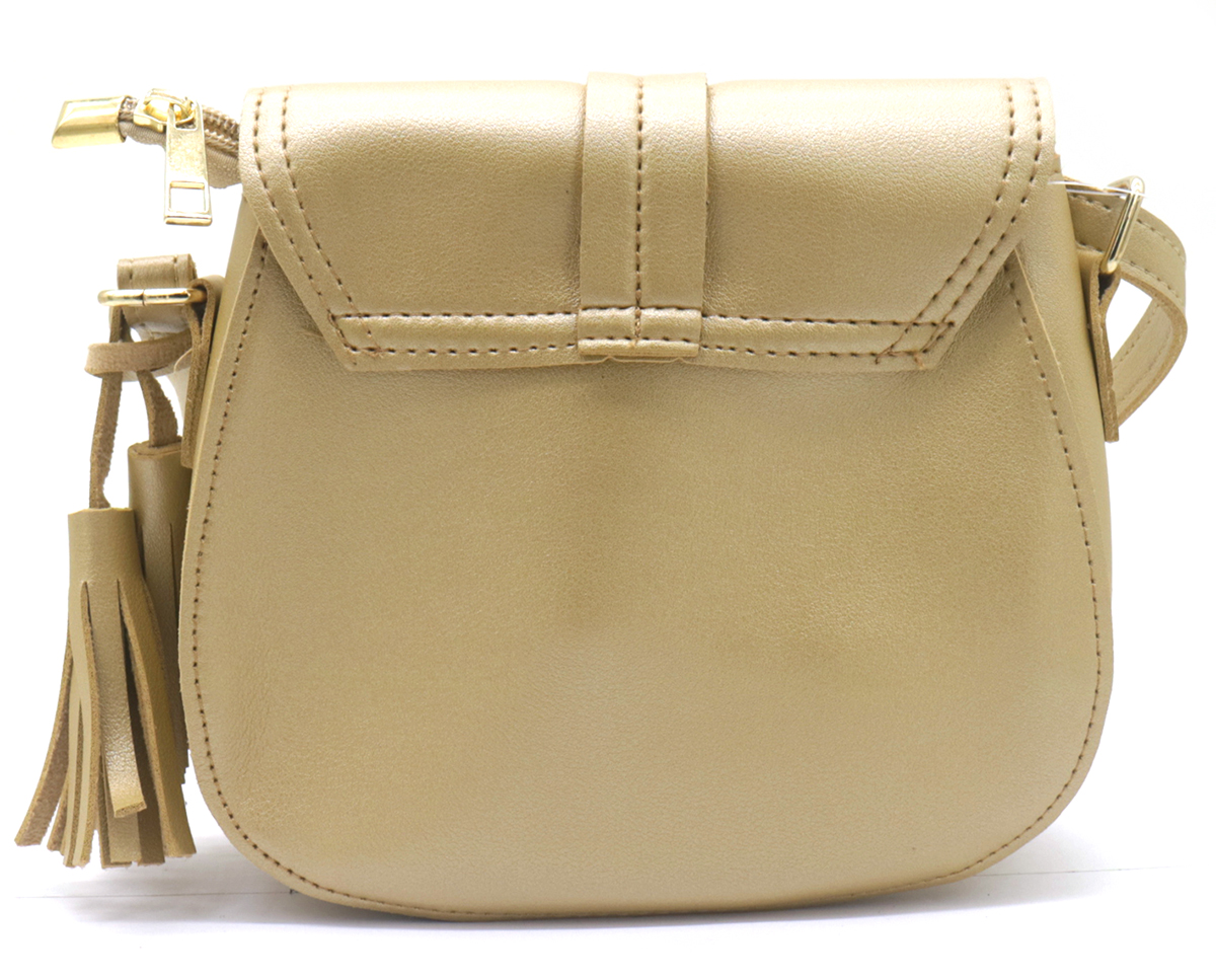 El elegante acabado dorado añade un toque de glamour, convirtiéndolo en el compañero perfecto tanto para salidas informales como para ocasiones especiales. Con su tamaño compacto, el bolso es ideal para llevar lo esencial, mientras que la correa ajustable para el hombro brinda comodidad y conveniencia para usarlo durante todo el día.