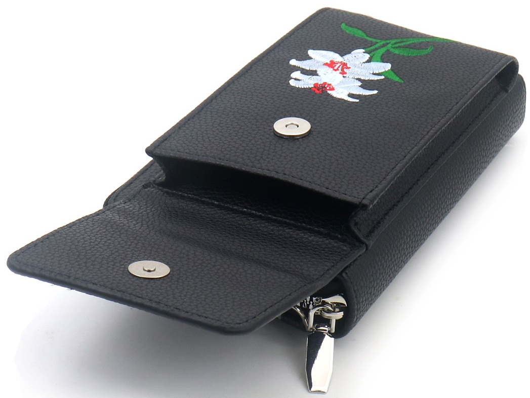 Nombre del producto: R-N8.2 BAG1113-001-1 Bolso PU Flores Bordadas 18 x 10,5 x 5 cm – Negro