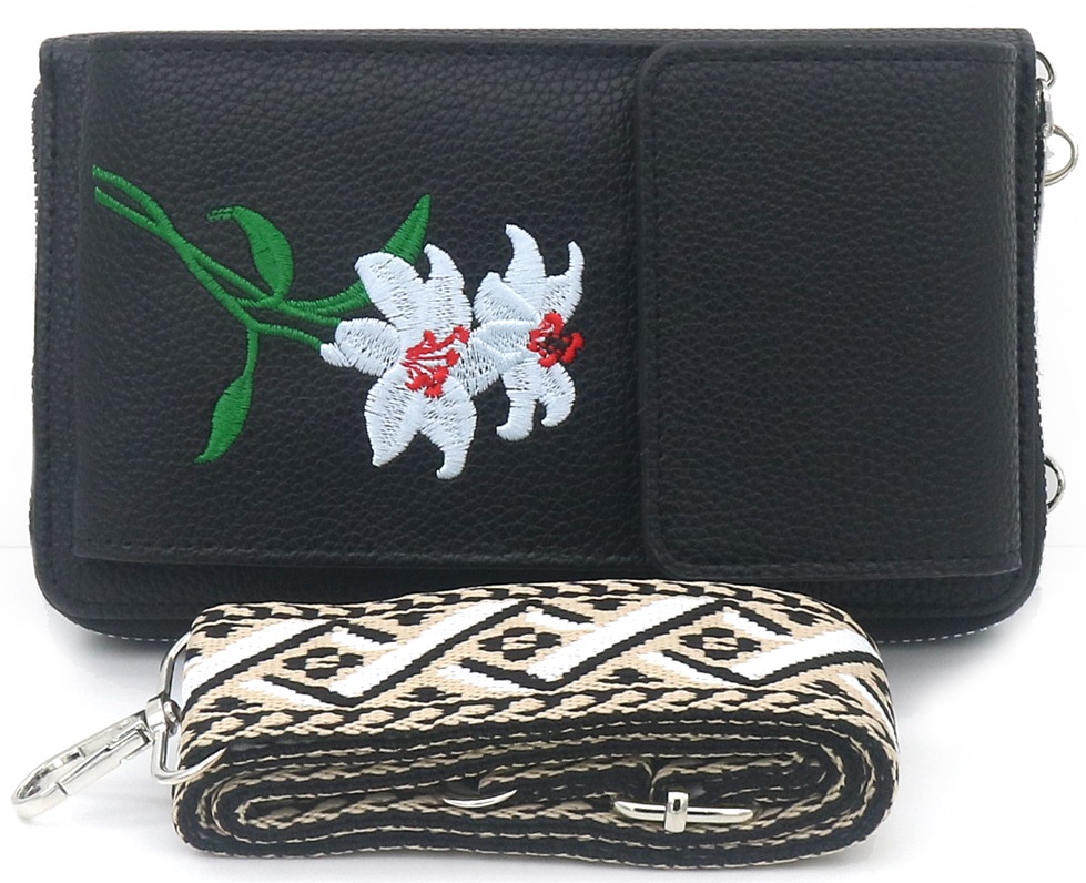 Product information "R-N8.2 BAG1113-001-1 PU Bag Embroidered Flowers 18x10.5x5cm Black"