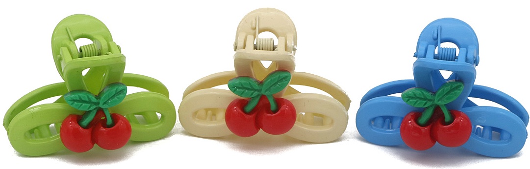 S-B1.1 H1127-002 Hair Claw 4.5cm Cherries Mixed Colors- 3pcs