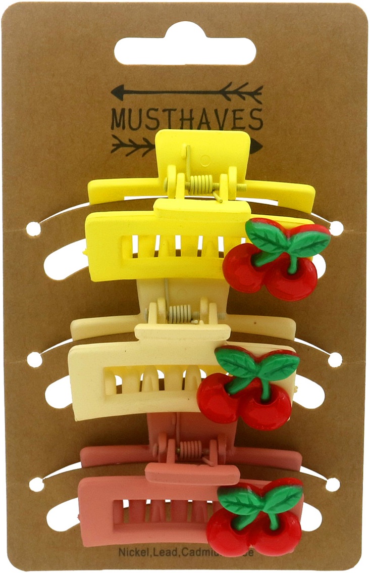 S-C1.2 H1127-003 Hair Claw 4.5cm Cherries Mixed Colors- 3pcs