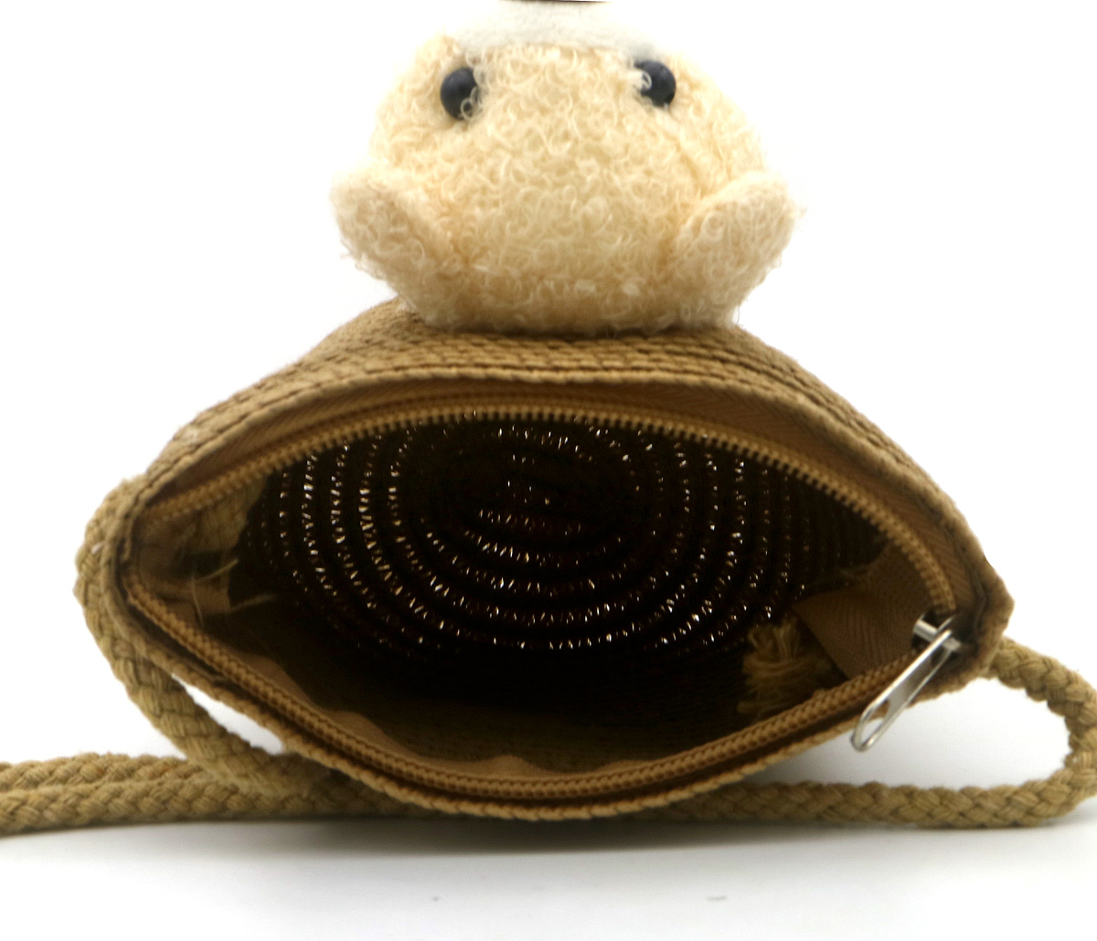 S-C2.5 BAG1120-003-2 Woven Kids Bag Bear 12.5x14.5x5.5cm Brown
