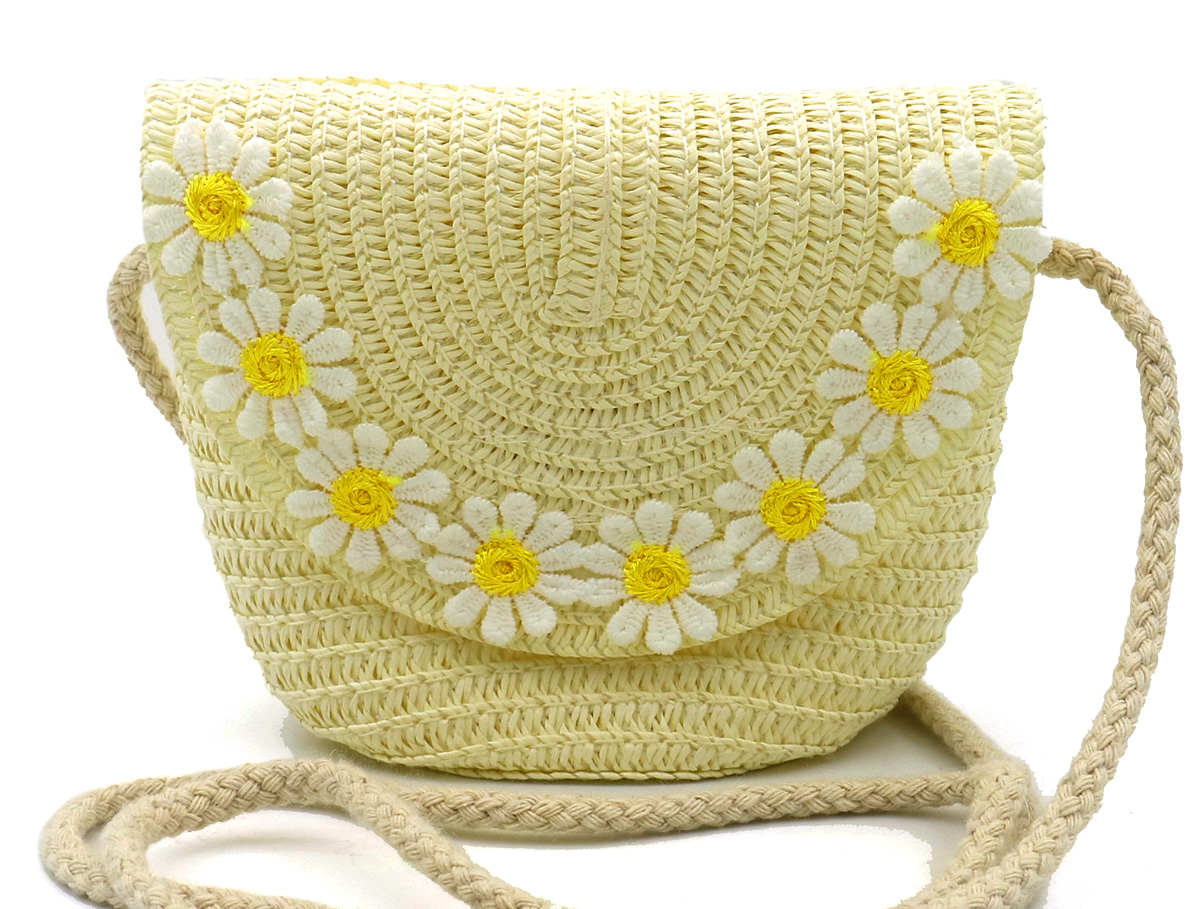 T-G8.1 BAG1120-001-2 Woven Kids Bag Flowers 12.5x14.5x5.5cm Beige
