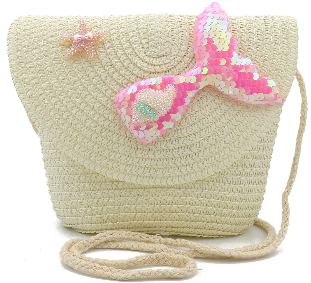 T-I4.1 BAG1120-004-2 Woven Kids Bag Mermaid 19x15x5.5cm Beige