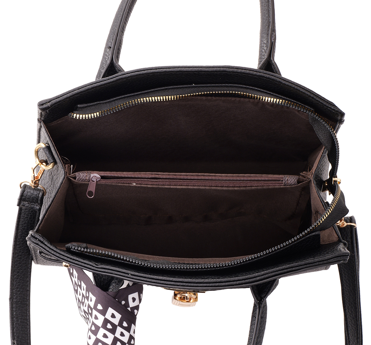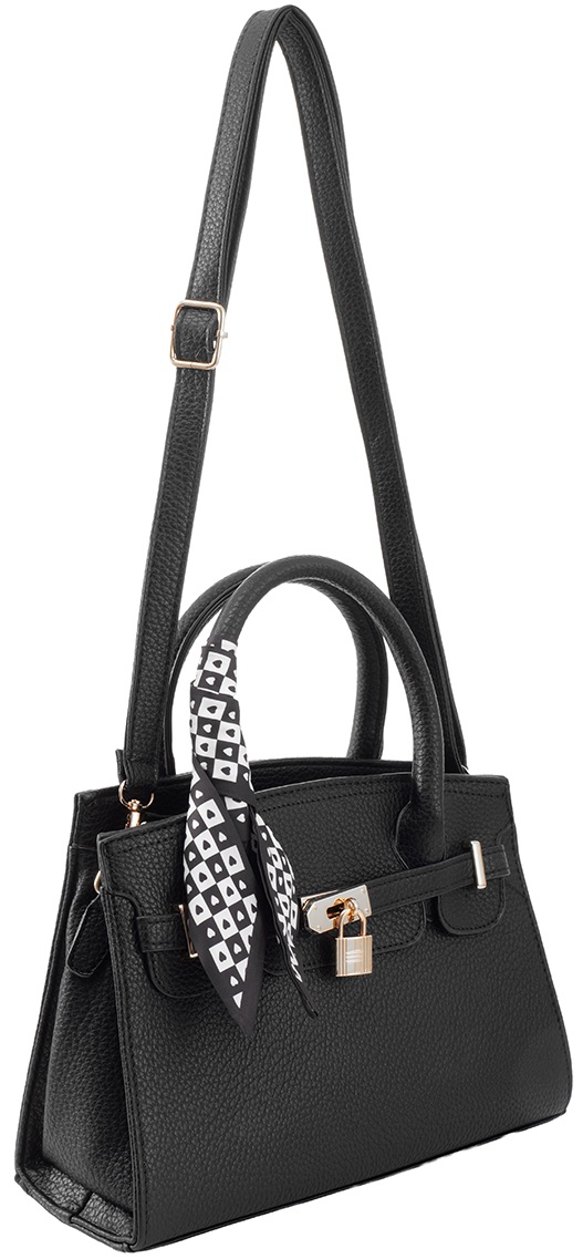 Y-A5.2 BAG1017-001-2 PU Bag with Scarf 28x20x9cm Black