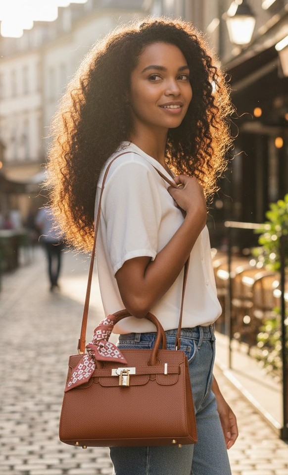 El rico tono marrón añade un toque de sofisticación, mientras que la bufanda incluida ofrece un divertido toque de color y se puede diseñar de varias maneras para adaptarse a tu atuendo. Ya sea que vayas a la oficina, a un brunch de fin de semana o a una salida nocturna, este bolso está diseñado para complementar cualquier conjunto.