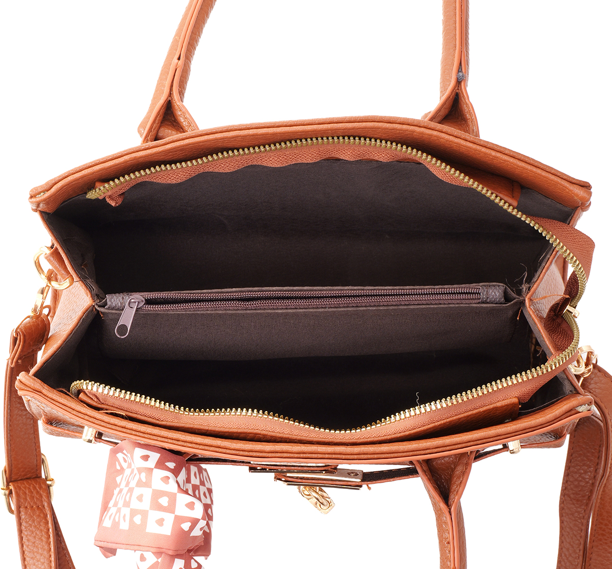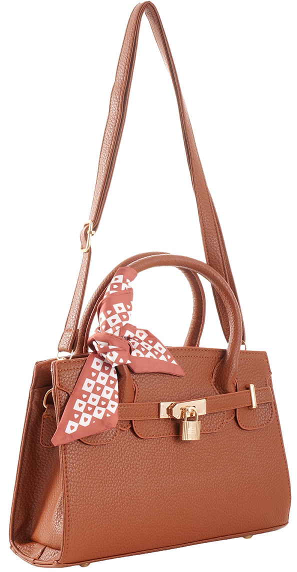 Y-C6.1 BAG1017-001-1 PU Bag with Scarf 28x20x9cm Brown