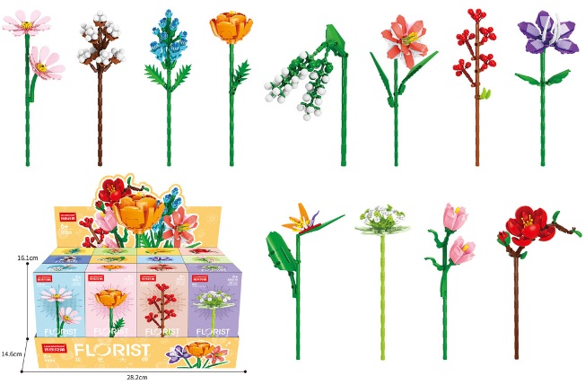 Y-D4.2 TOY8856 Building Blocks Flowers - 12pcs in Display