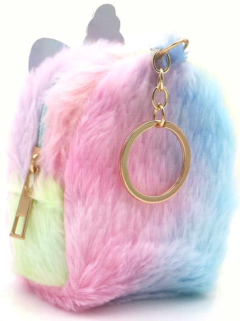 Z-D2.1 KY1154-003 Fluffy Keychain Wallet Unicorn 9x7x5cm - Mixed Colors - 1pc
