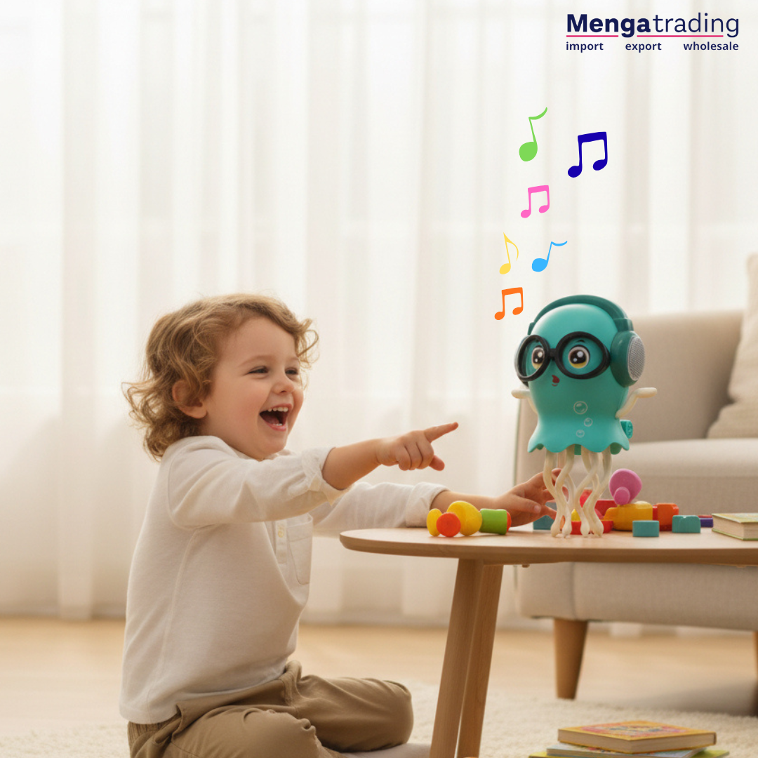 Equipada con deslumbrantes luces LED, esta medusa ilumina la habitación con un caleidoscopio de colores, realzando la atmósfera lúdica. La música incorporada añade una capa extra de diversión y anima a los pequeños a bailar y moverse junto con su nuevo amigo acuático.